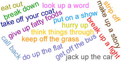 Choose from the following verbs, put it in the right form, and add the correct preposition (in, to, over, for, out, on, up, down, around, of, off, along, etc):
