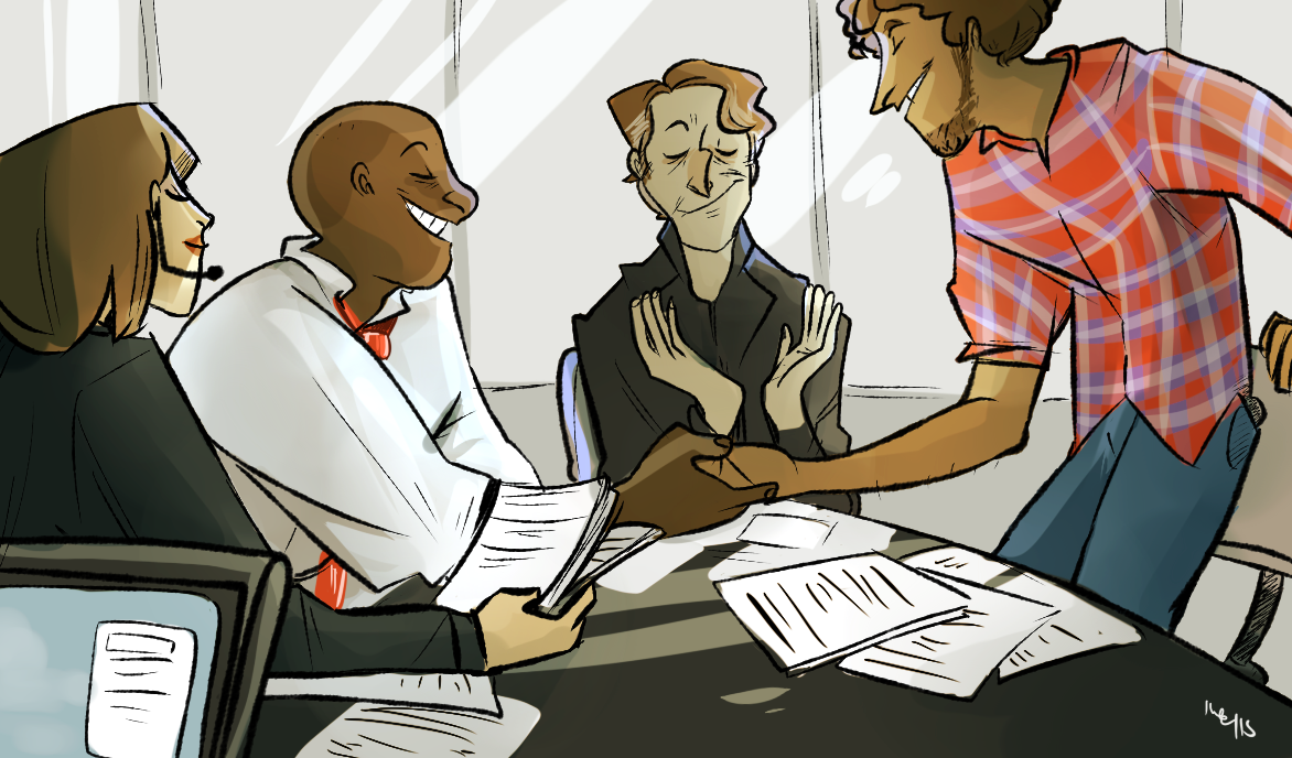 Everybody’s happy, so far. They talk a bit more, and wrap up the details to close the deal.